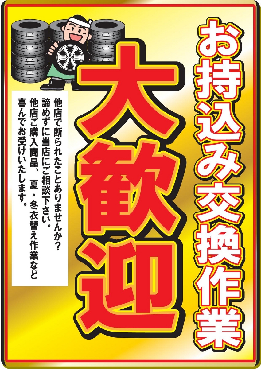 お任せください!!ネットで買ったタイヤでも当店では22インチまで喜んでお受けさせて頂きます!!