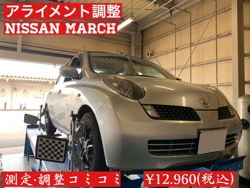 本日はマーチ(5MT車)のアライメント施工させて頂きました!!