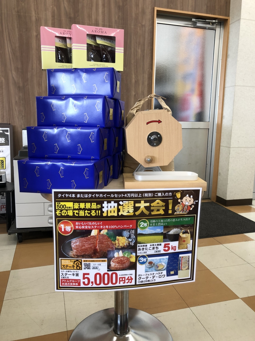 今タイヤ4本(¥40,000以上)お買い上げのお客様に