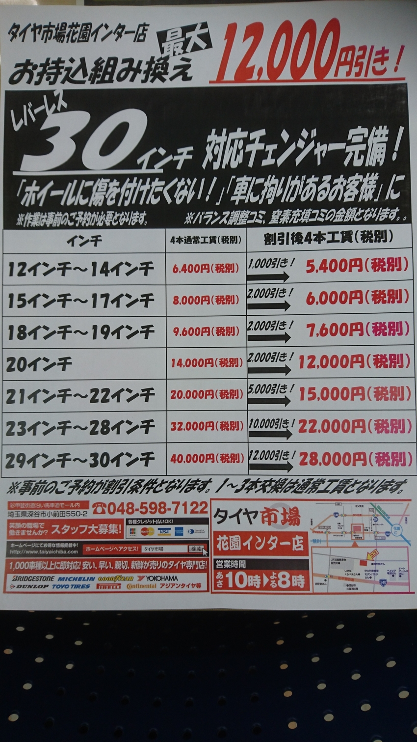 タイヤ市場花園店では現在お持込組み換えキャンペーン中!