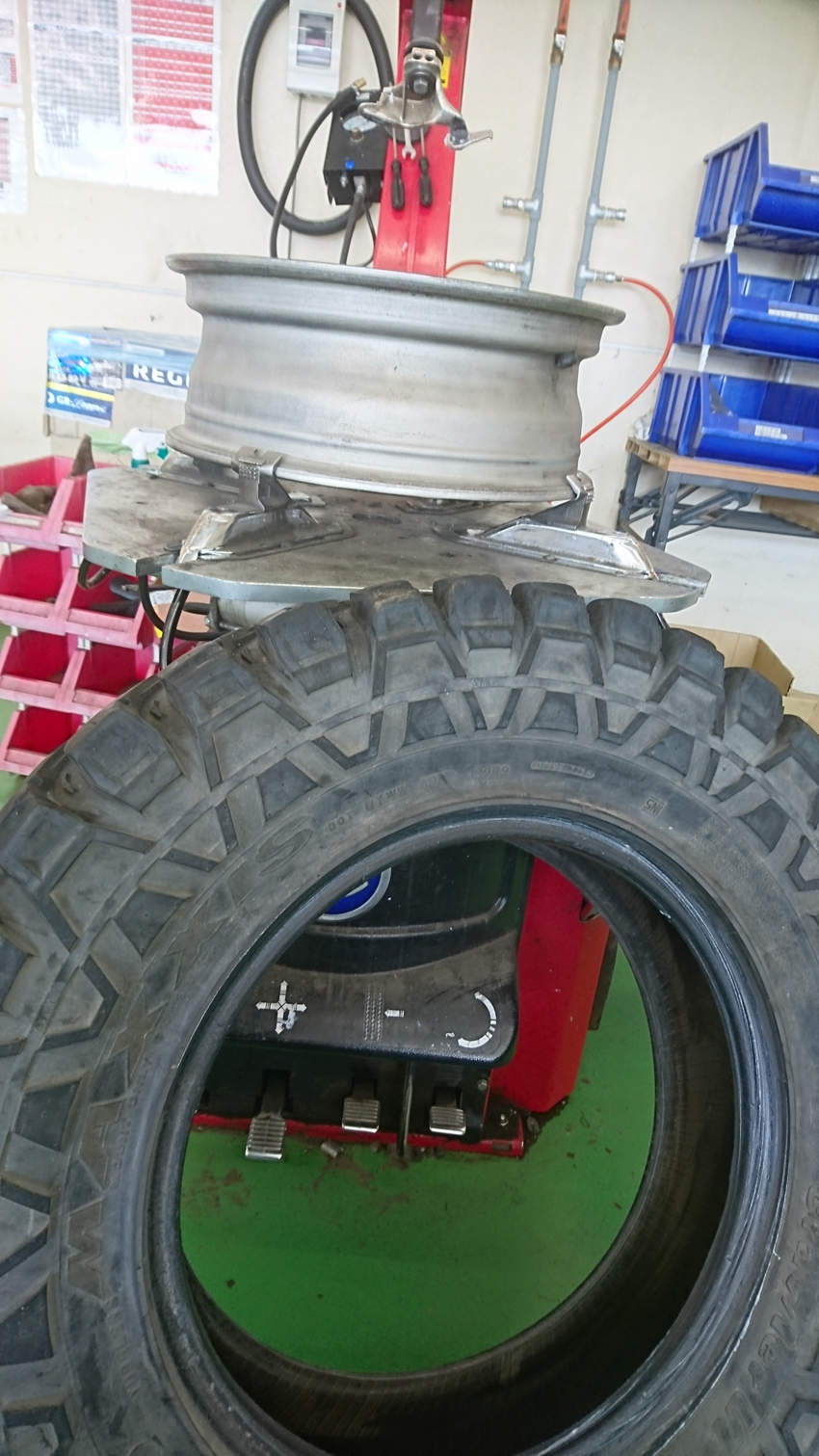 本日はジムニーのカスタムサイズ7.00R16のクリーピークローラーをお持込にて組み換えさせて頂きました。