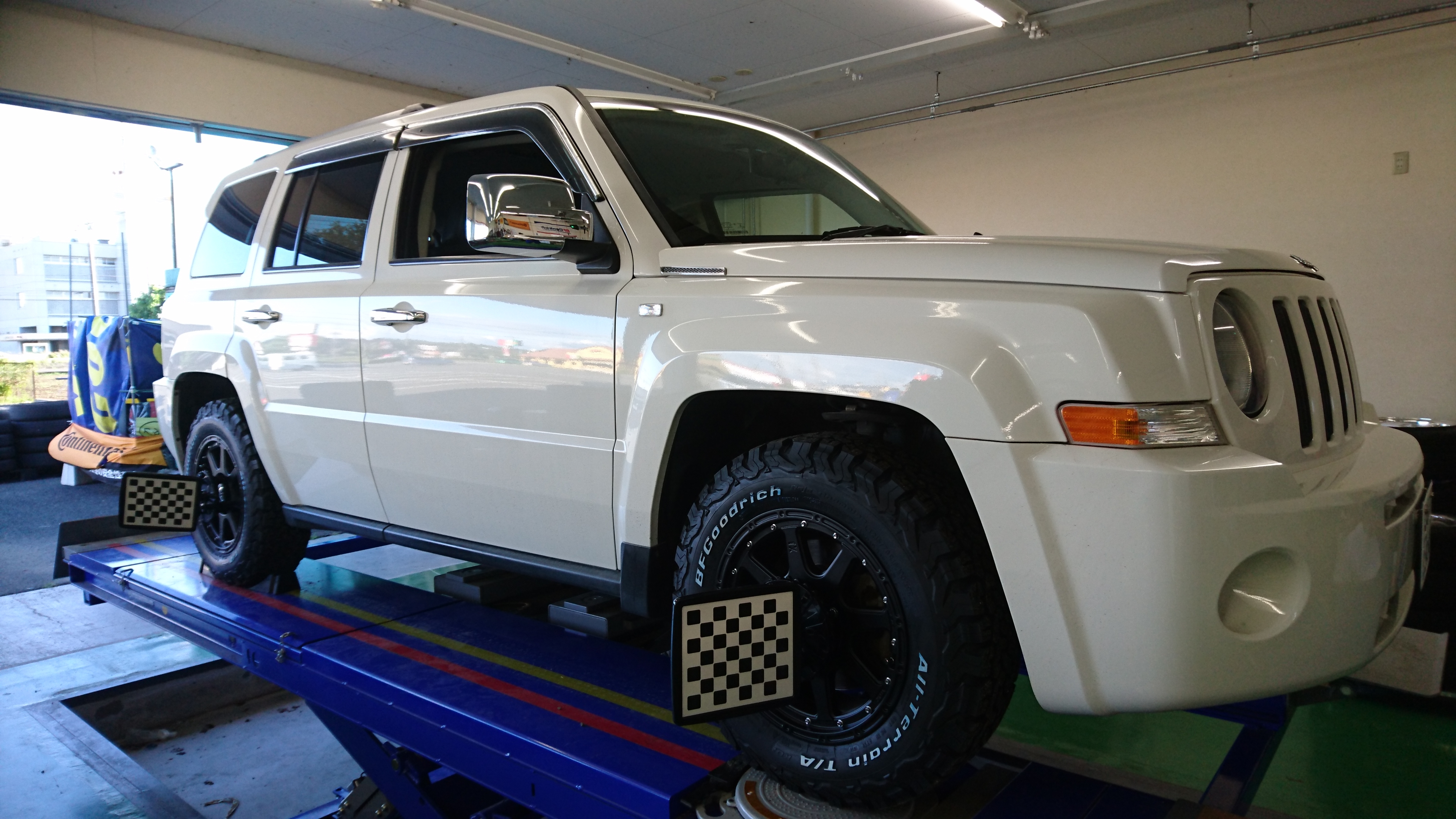 ジープパトリオットに16インチアルミセット装着!!マッドカスタム系のホイールでMLJのエクストリームJをチョイス!タイヤはBFグッドリッチのTAKO2です(*^_^*)ワイルドな感じに仕上がりましたね!アライメントもバッチリ調整させて頂きました!オーナー様有難う御座います!(^^)!メンテナンスでまたお待ちしております!