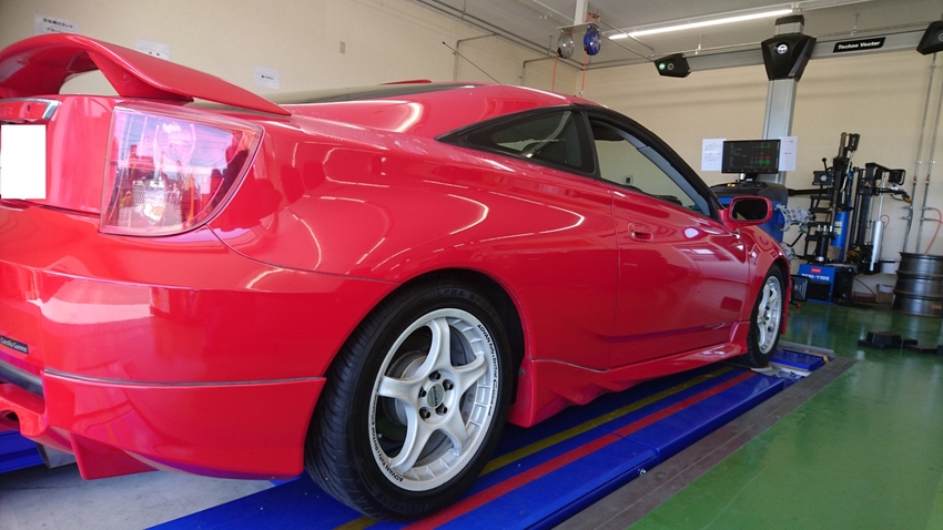 セリカでアライメント調整作業をさせて頂きました!!これからサーキット走行をするという事でお客様とお話をさせて頂きセッティングさせて頂いております(*^_^*)
