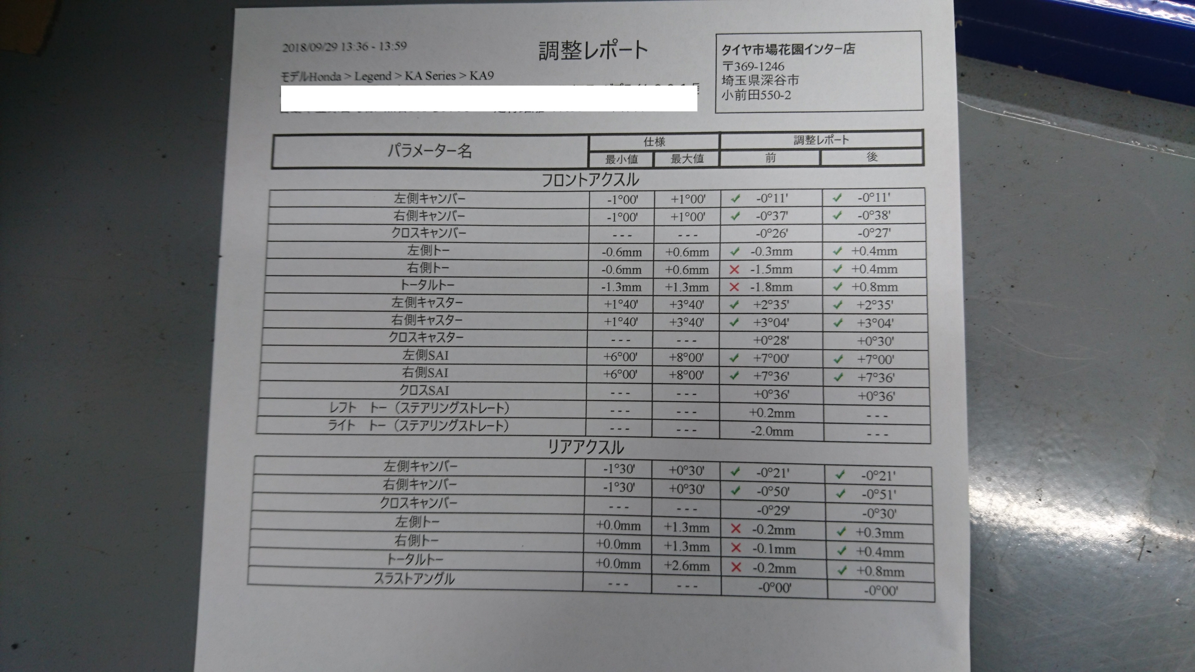 ホンダの名車レジェンドでアライメント調整をさせて頂きました!!型式はKA9型!最近少なくなってきてしまっていますが、好きな方多いのではないでしょうか?この年式ともなると足回りのガタが少しづつ出てきますね(゜o゜)タイヤの片摩耗の症状が出ていましたのでアライメント調整です!フロントリア共にトー角のズレが出ていたので調整させて頂きました!(^^)!症状改善されるとよいですね!オーナー様いつまでも車をお大事に!