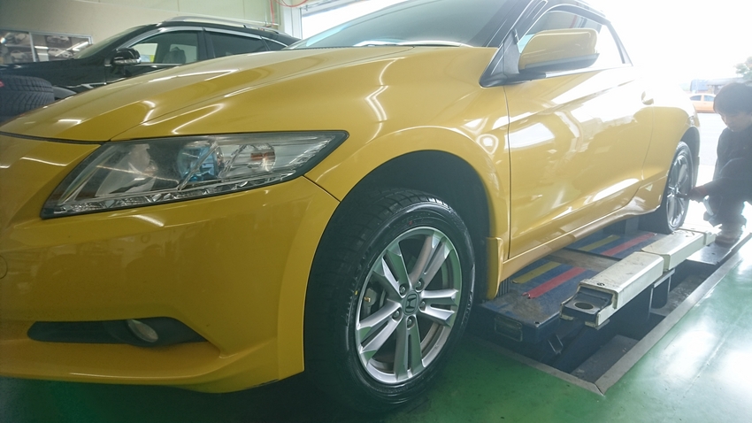 ホンダのCR-Zでオールシーズンタイヤを装着させて頂きました!オーナー様曰く後2年位しか車を乗らないという事でしたので。。。オールシーズンタイヤの出番です!(^^)