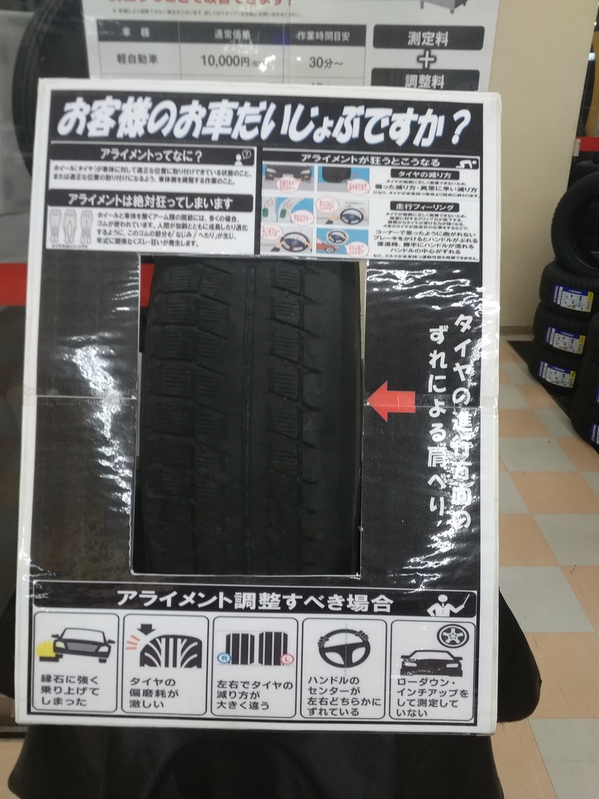 そんなお車にはアライメント調整がとても有効でタイヤが真っ直ぐ