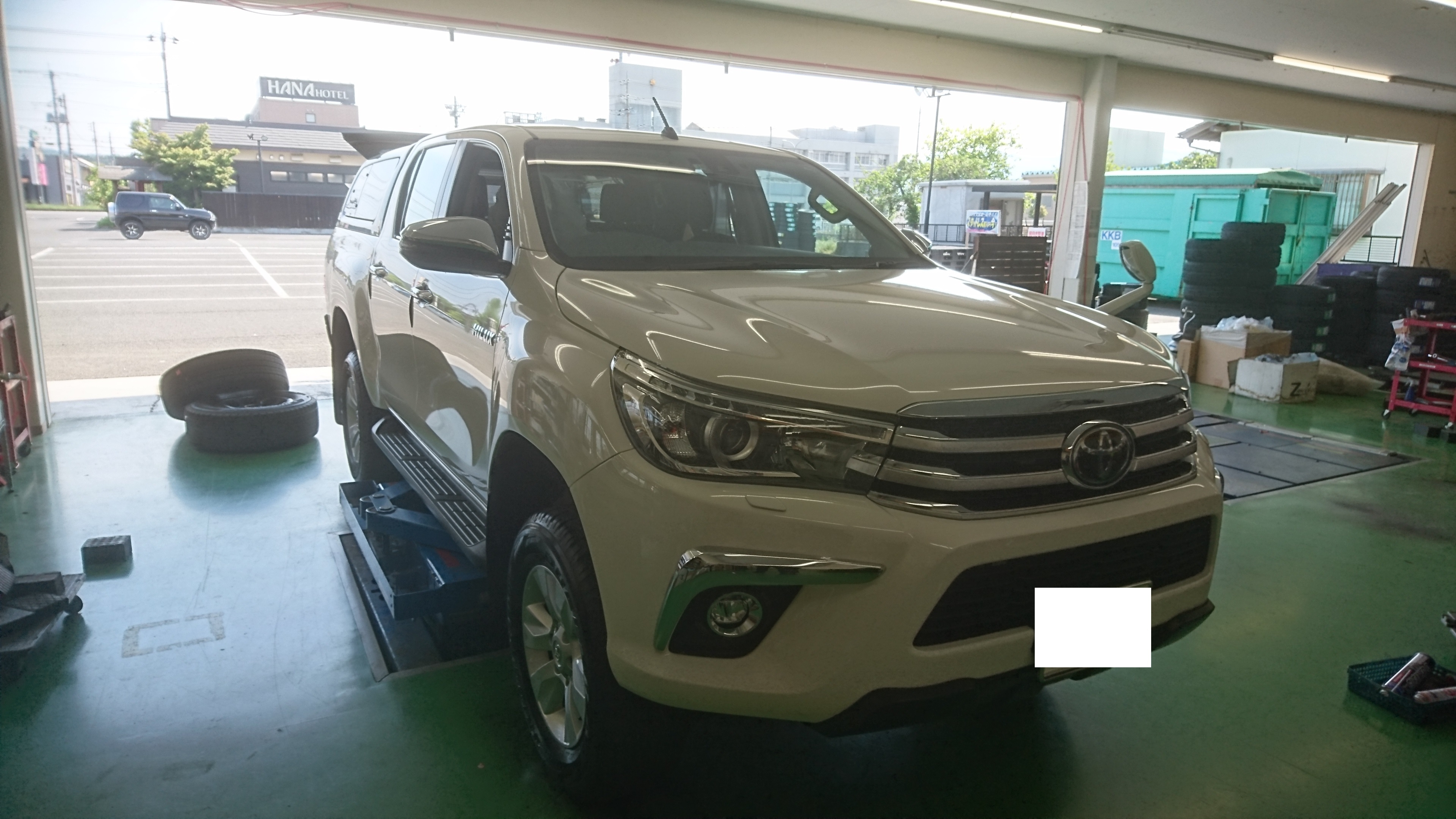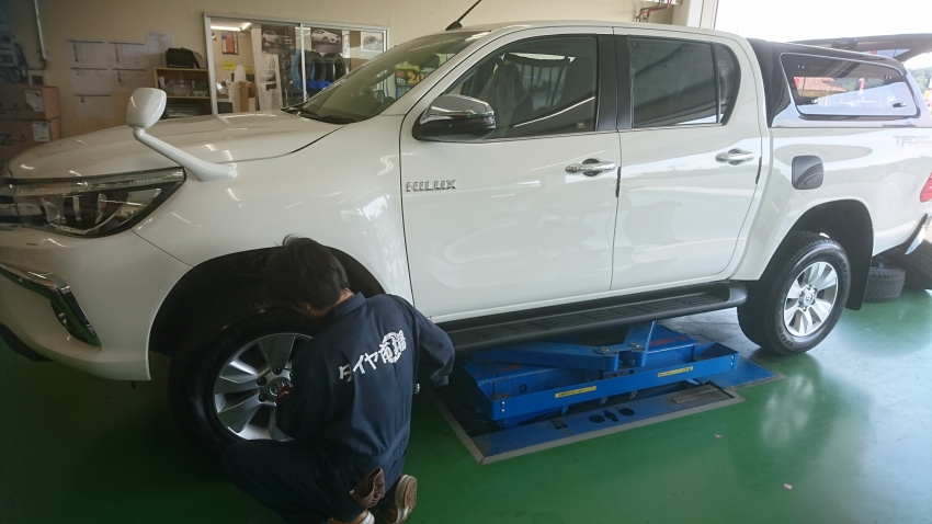 本日の作業の一コマ!ハイラックスピックアップでお持ち込みの付け替えをさせて頂きました!(^^)!