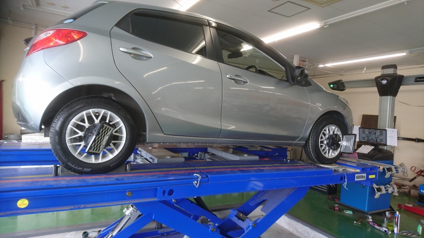 デミオでタイヤ交換×アライメント調整!!