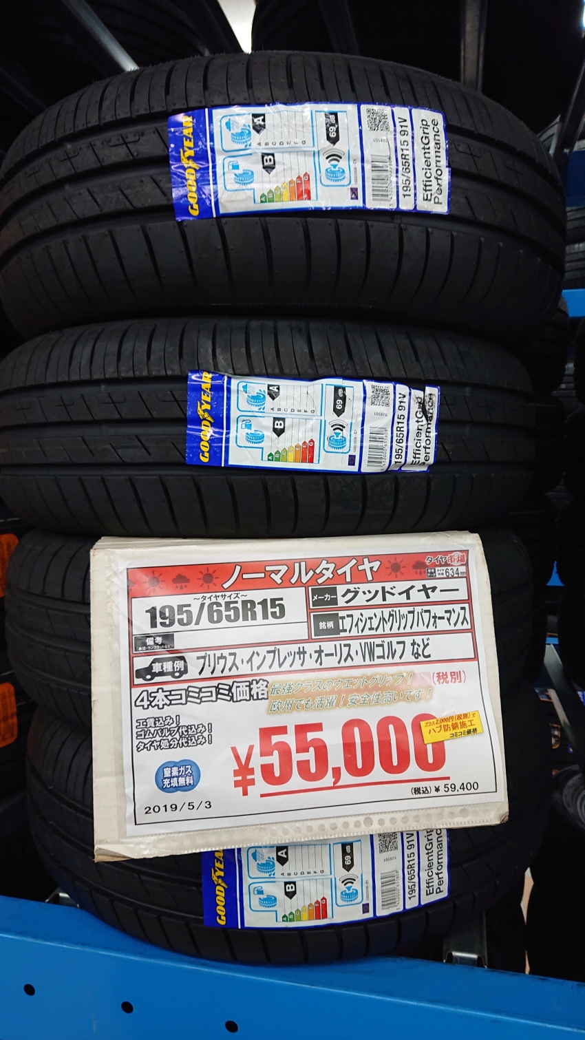 画像のタイヤは、グットイヤーのエフィシェントグリップパフォーマンスというタイヤで国内ラベルと比較すると燃費AAウェットAと