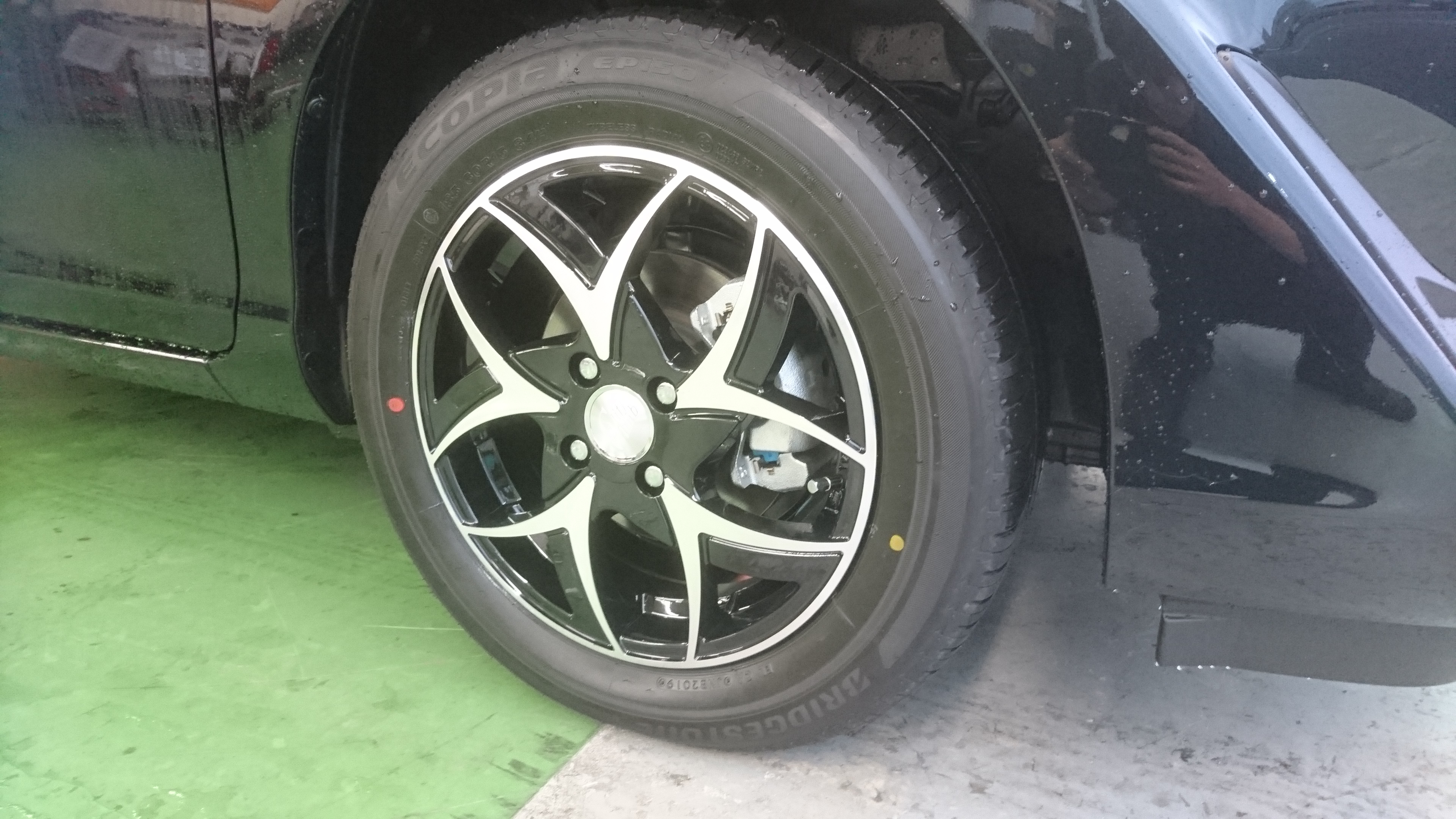 今回新車という事でタイヤはそのまま使い、スチールホイールからアルミホイールに交換させて頂きました!(^^)!