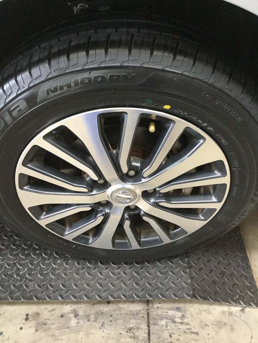 実は、駐車場の縁石にヒットされパンクしていました・・・