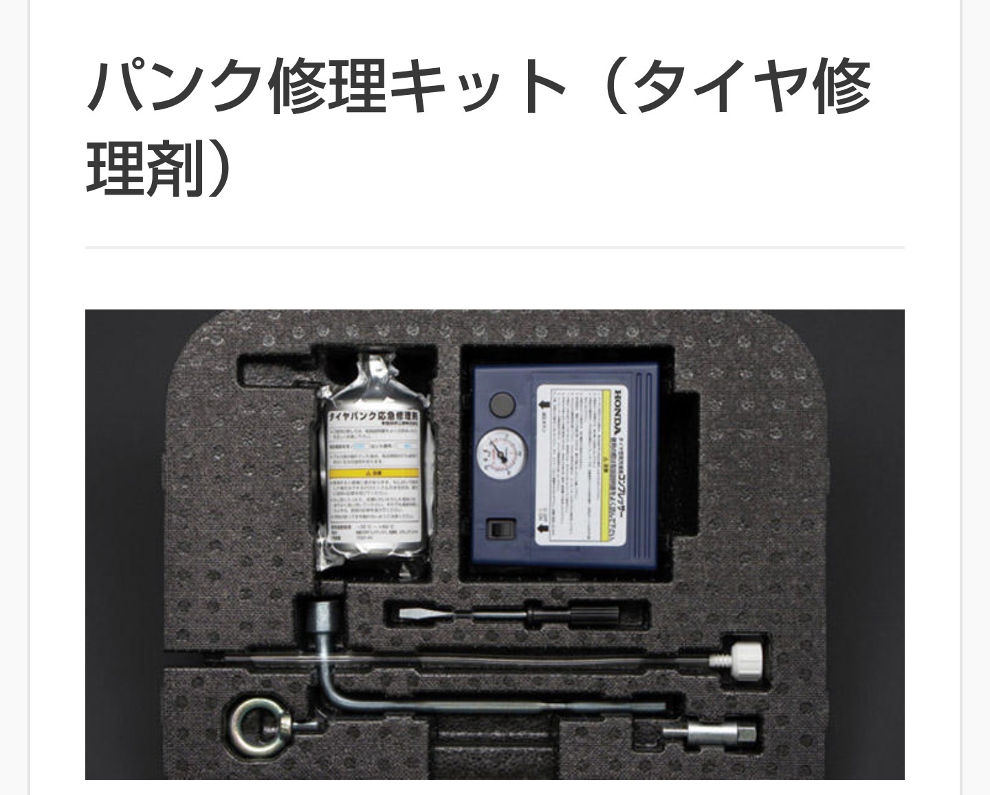 その代り積まれているのがパンク修理キットです!(写真参照1)