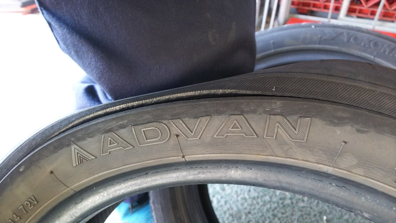 今日交換したタイヤでショルダー部の偏摩耗タイヤを観察したら側面全体に丸いわっかのスジ割れがありました。