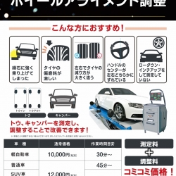 タイヤが長持ち、スムーズで安定した走りに重要です。測定・調整込みの格安プランです。