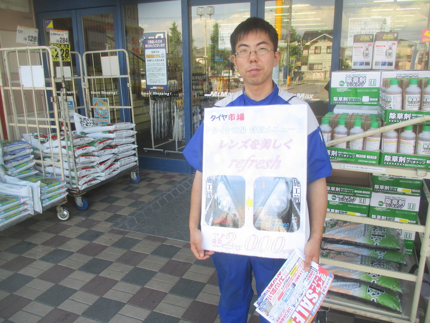 タイヤ市場ではタイヤだけでなくヘッドライトコーティングも施工中!!