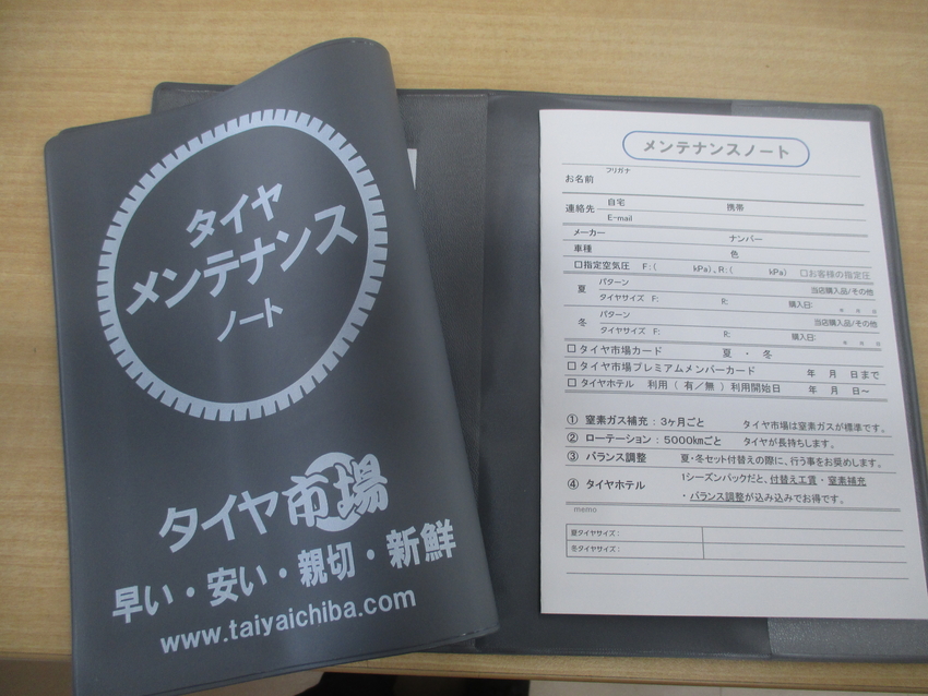 (宮子店でなくても、全国のタイヤ市場でノートをお見せいただければ点検等作業内容を記入いたします。)
