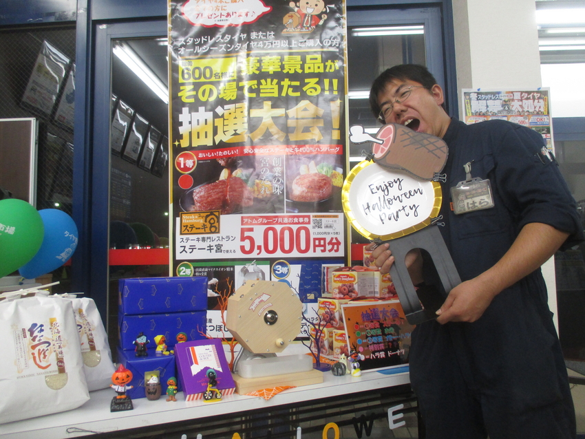 タイヤ市場では、その場で豪華景品があたる抽選大会実施中です。