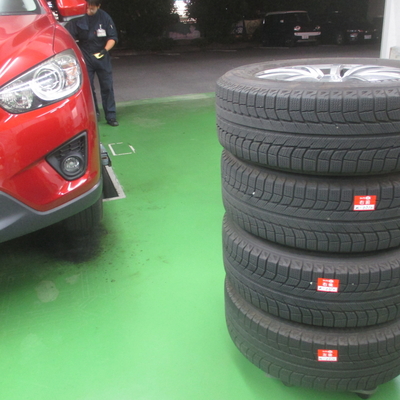 タイヤホテルご利用のお客様にお預かりしたタイヤを予約時間ごとにスタンバイしております!!