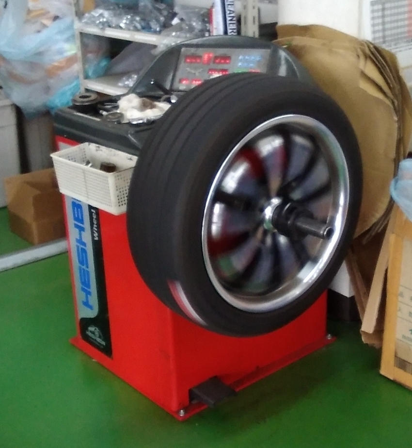 今日はタイヤホテルでお預かりしているタイヤの「バランス調整」を行なっております。
