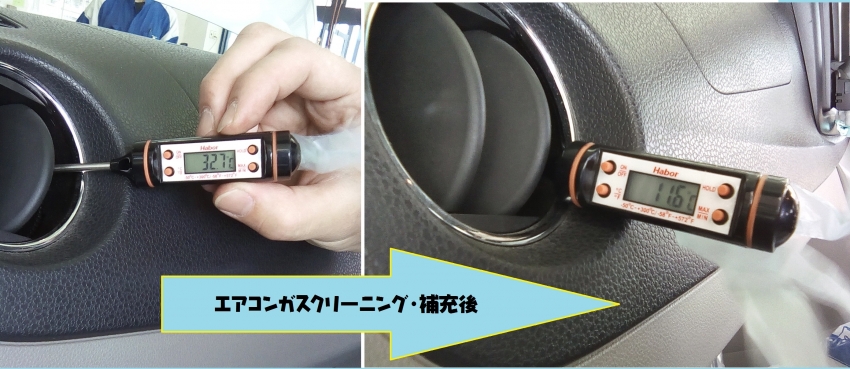 エンジンをかけてエアコンからの風を温度計で測ると...
