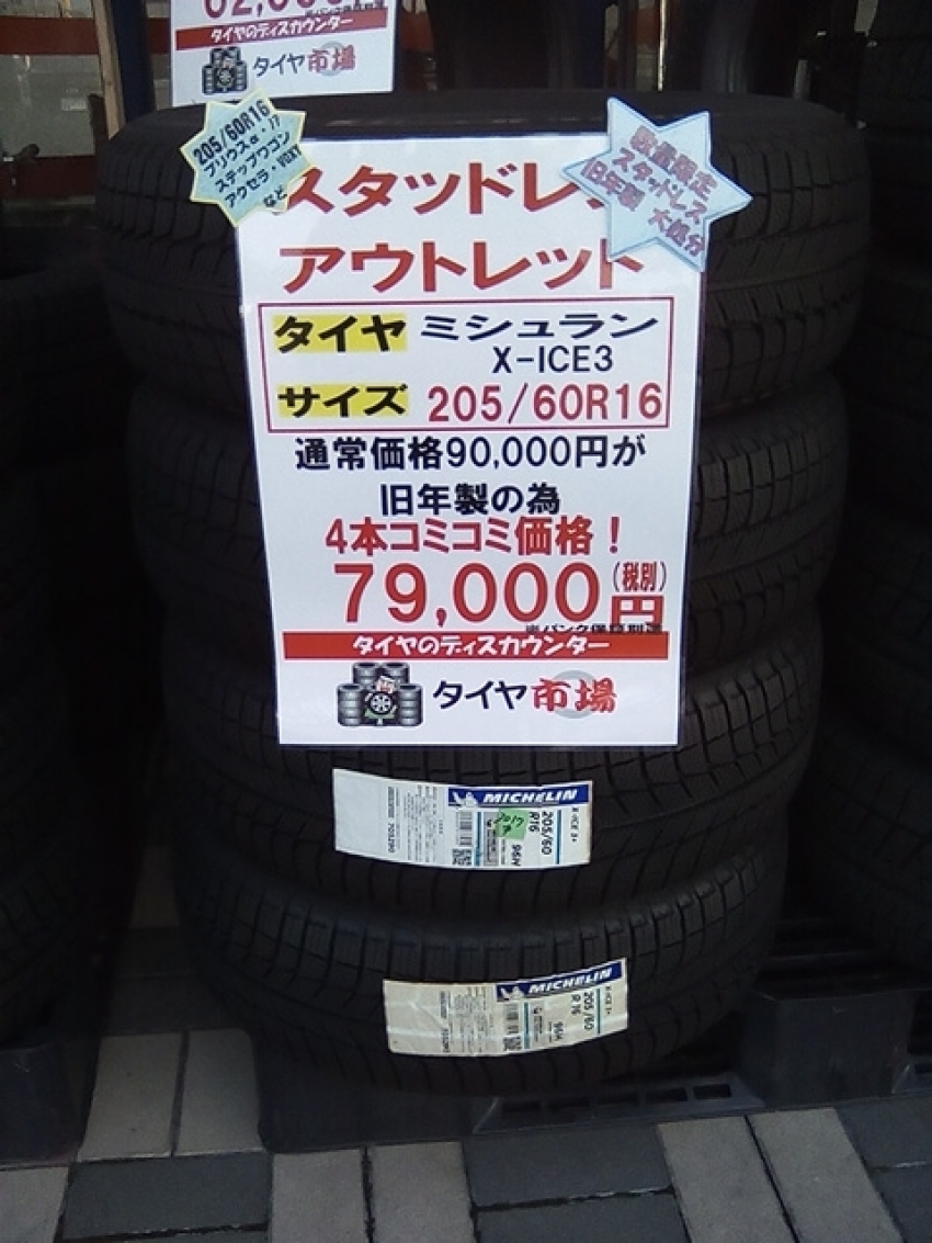 でもでもタイヤ市場伊勢崎宮子店では、お得なアウトレットスタッドレスを売り出し中です☆