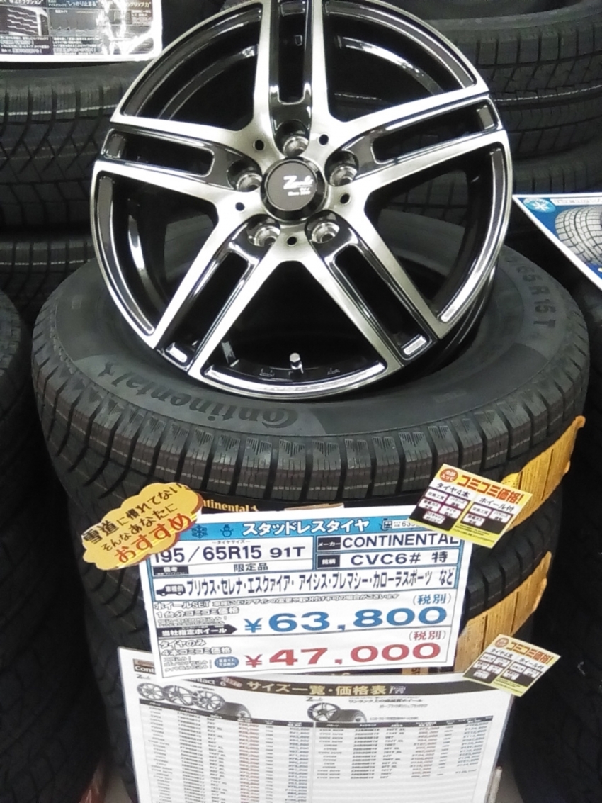 店内に表示されている価格は、すべて工賃やタイヤ処分代、ゴムバルブ交換・バランス調整など全てはいった値段となっています