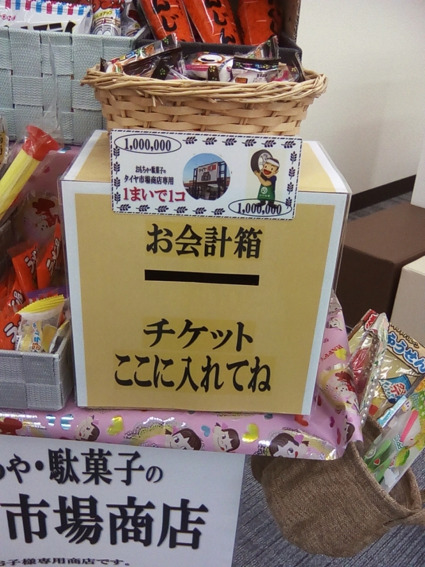 ご家族連れでスタッフに声掛けていただきますと、お子様一人に付きましてチケットを差し上げます。どれか1つお好きなお菓子、おもちゃをお選びいただけます。