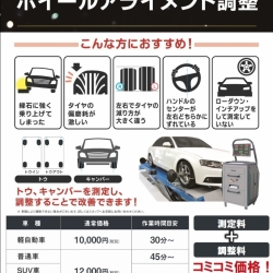 タイヤが長持ち、スムーズで安定した走りに重要です。測定・調整込みの格安プランです。