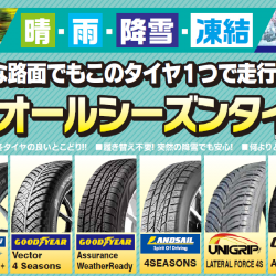 一年を通して使用できる全天候型タイヤ。ミシュラン、グッドイヤー、ランドセイル