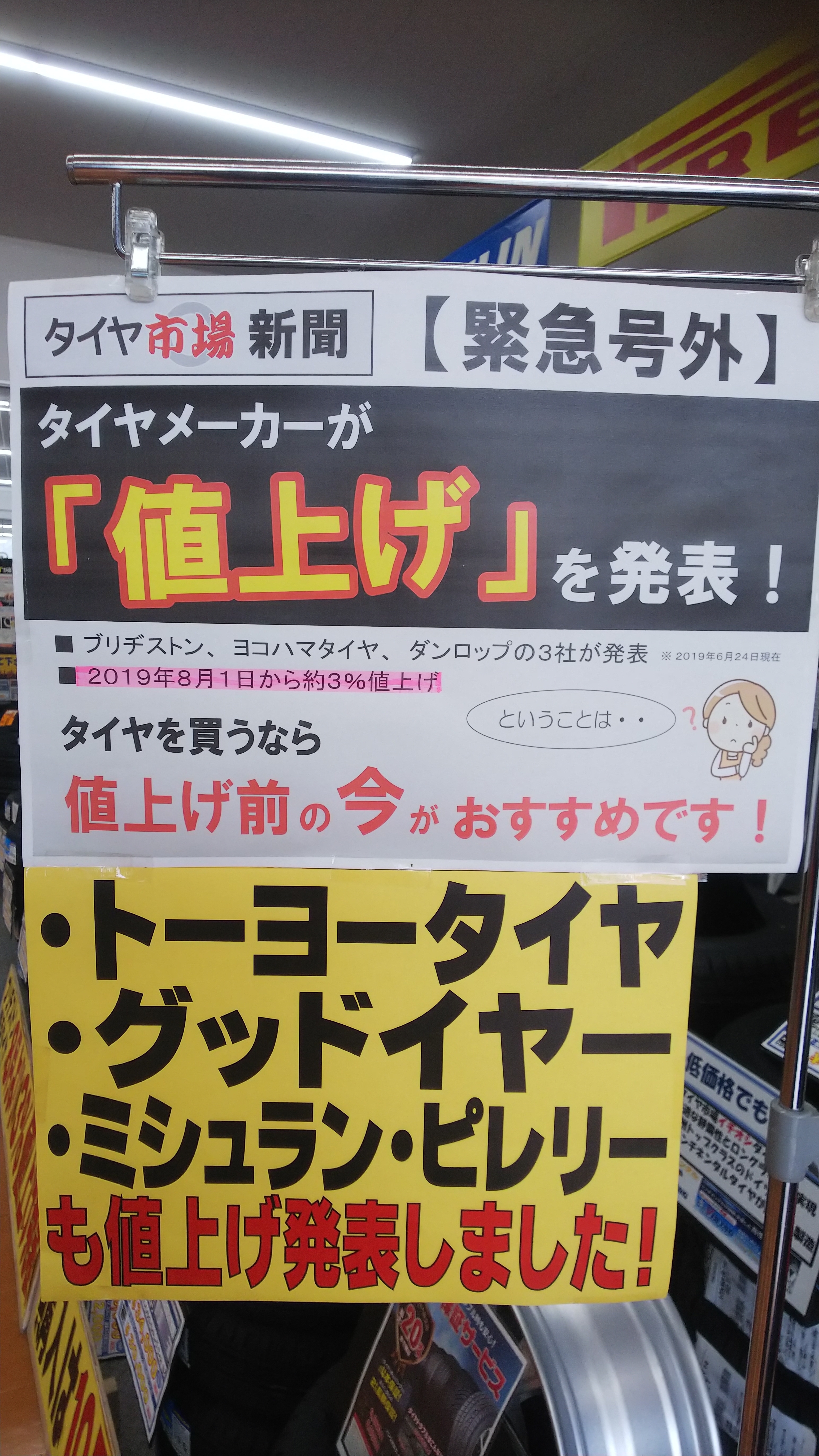 タイヤメーカーの値上げが8月からいよいよ始まります。