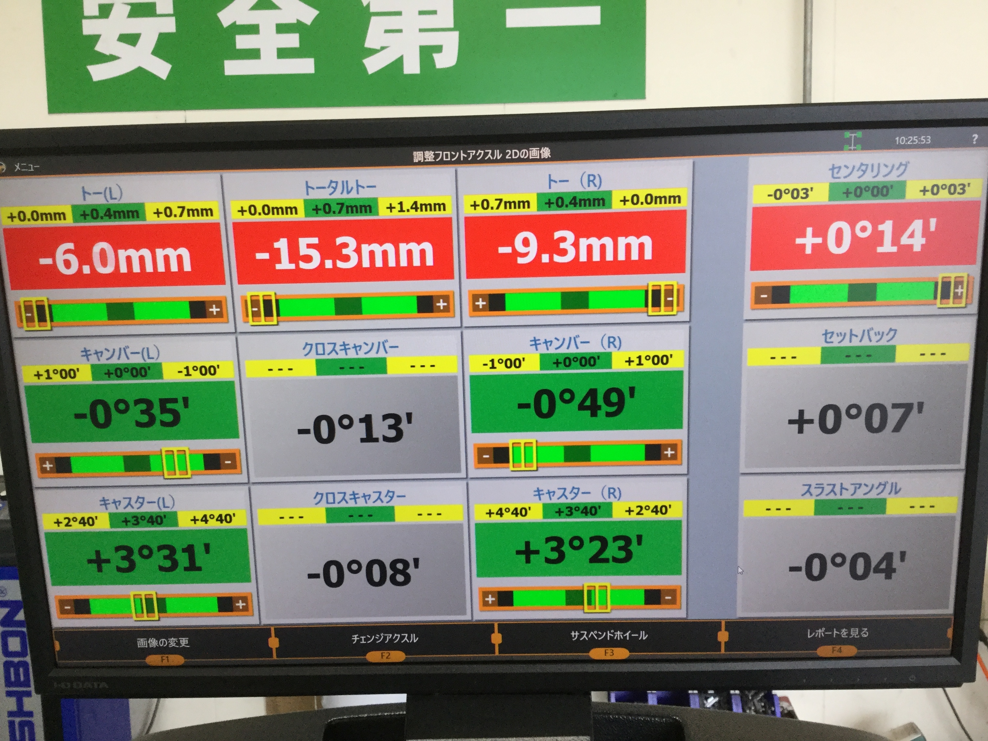 最初の測定値は、結構トーが開いており要調整の状態でした!