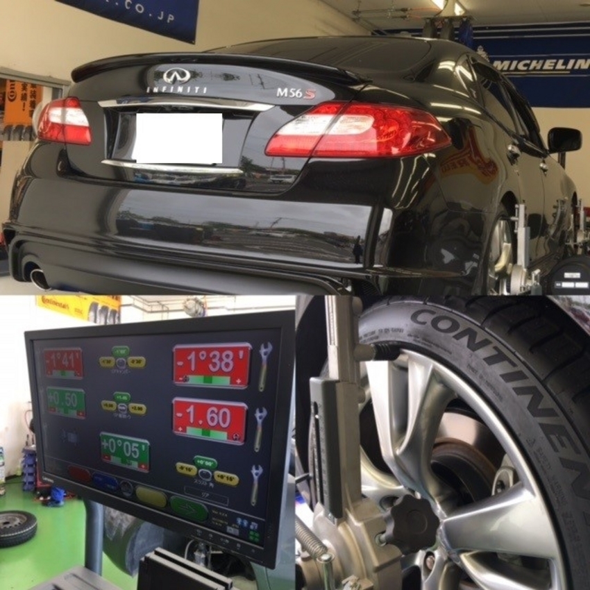 フーガのお客様にタイヤ4本交換とホイールアライメント