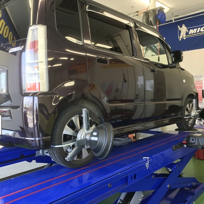 フロントのトーの狂いをメーカー指定の基準値内に調整させていただきました。