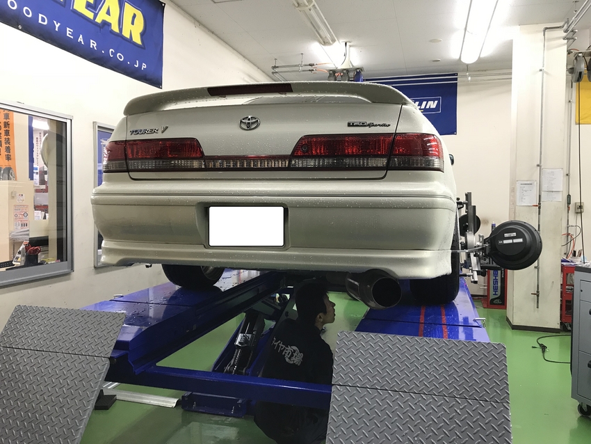 先日車の修理を行ったため、アライメントの調整をおこなったマークⅡです!