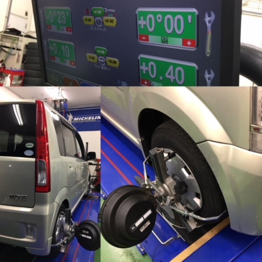 本日はダイハツムーブのお客様に夏タイヤへの付替えとアライメント