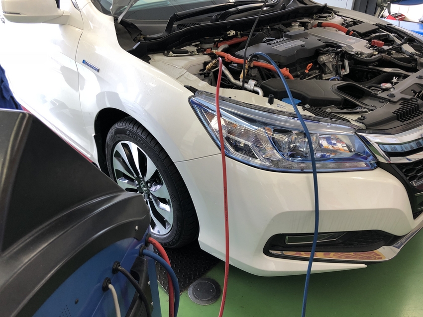 ハイブリッド車のホンダ・アコードのエアコンガスクリーニングを作業させて頂きました!!
