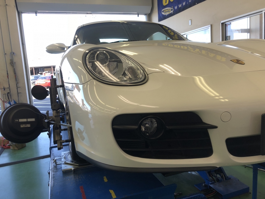 本日、ポルシェ・ケイマンのアライメント調整をさせて頂きました!