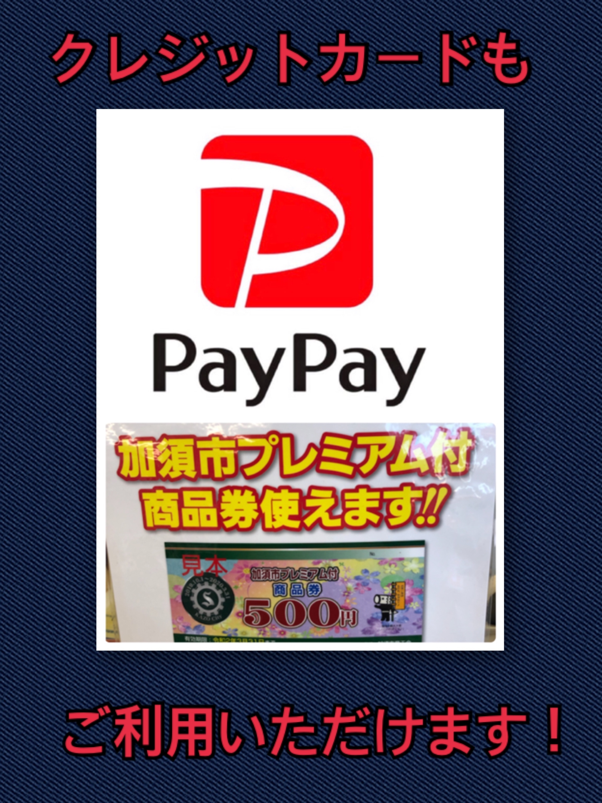 PayPayや加須市プレミアム付商品券もご利用いただけます!!