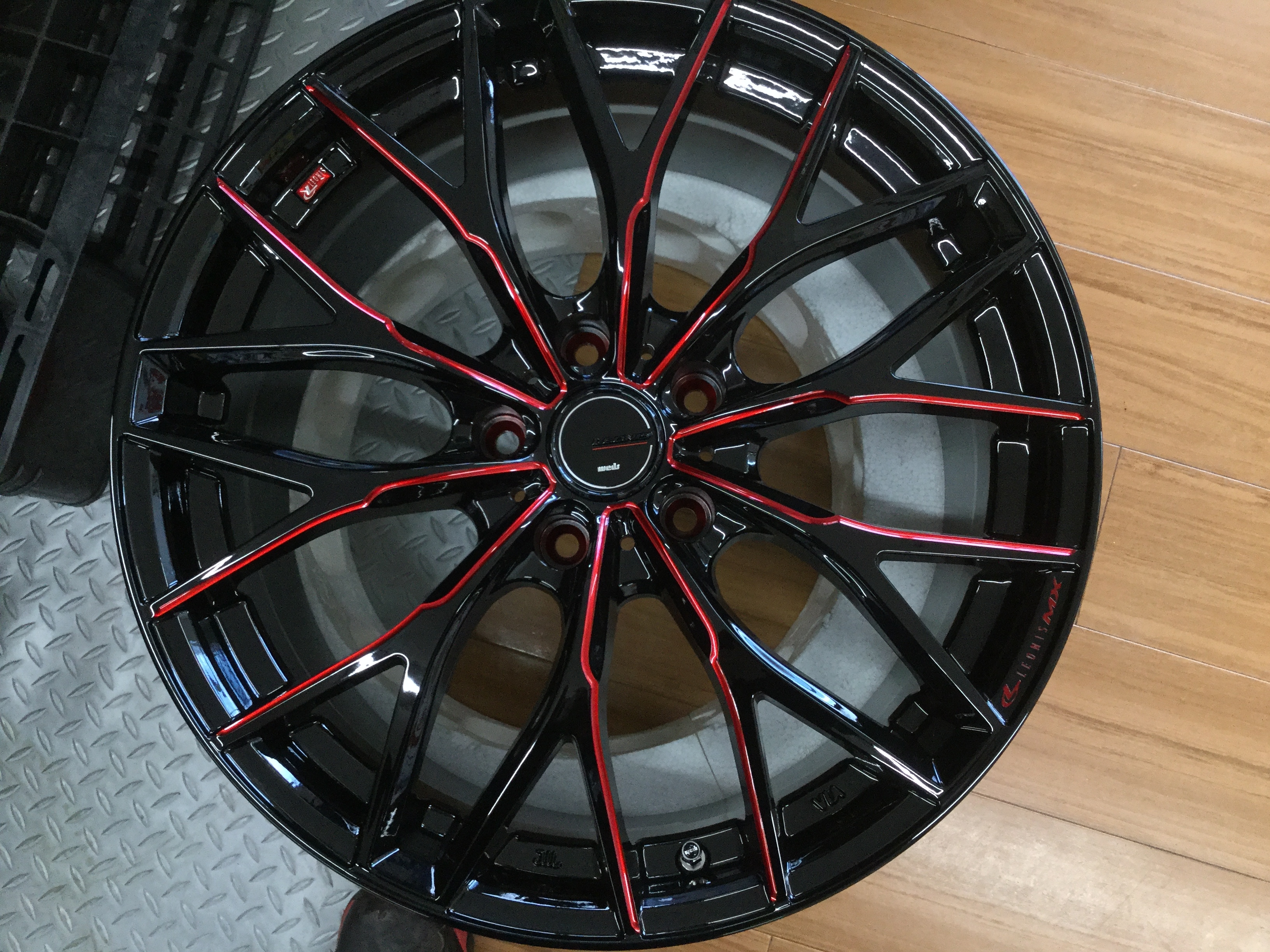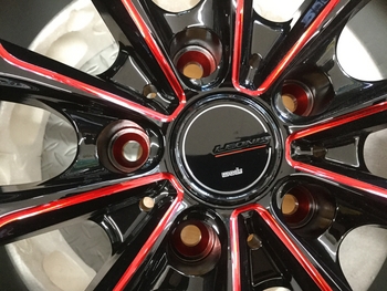 ☆センターキャップはフラットタイプでLEONISと刻印されていてさらにカッコよくなっています。ナットホールも赤色を入れていてスゴくこだわりのあるホイールです。