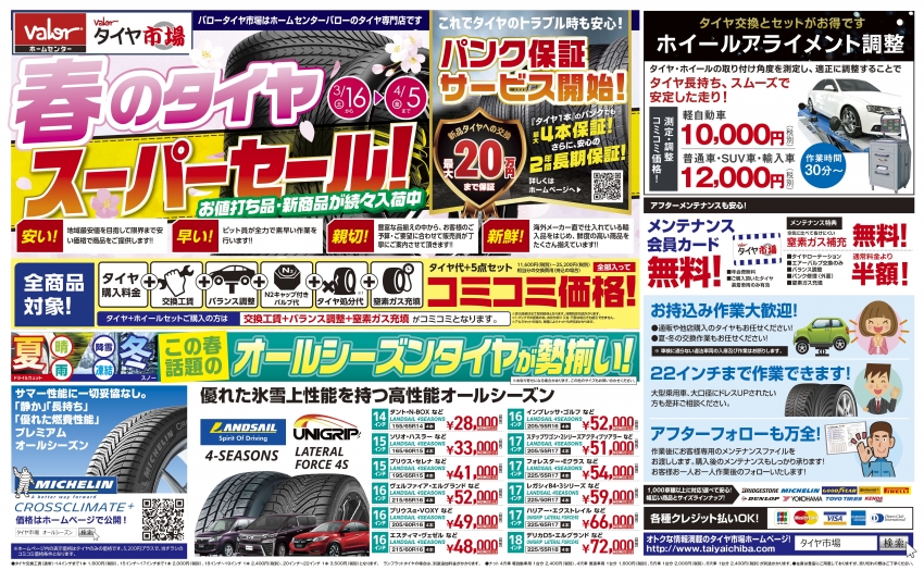 本日より春のタイヤスーパーセールを4月5日まで開催しております。