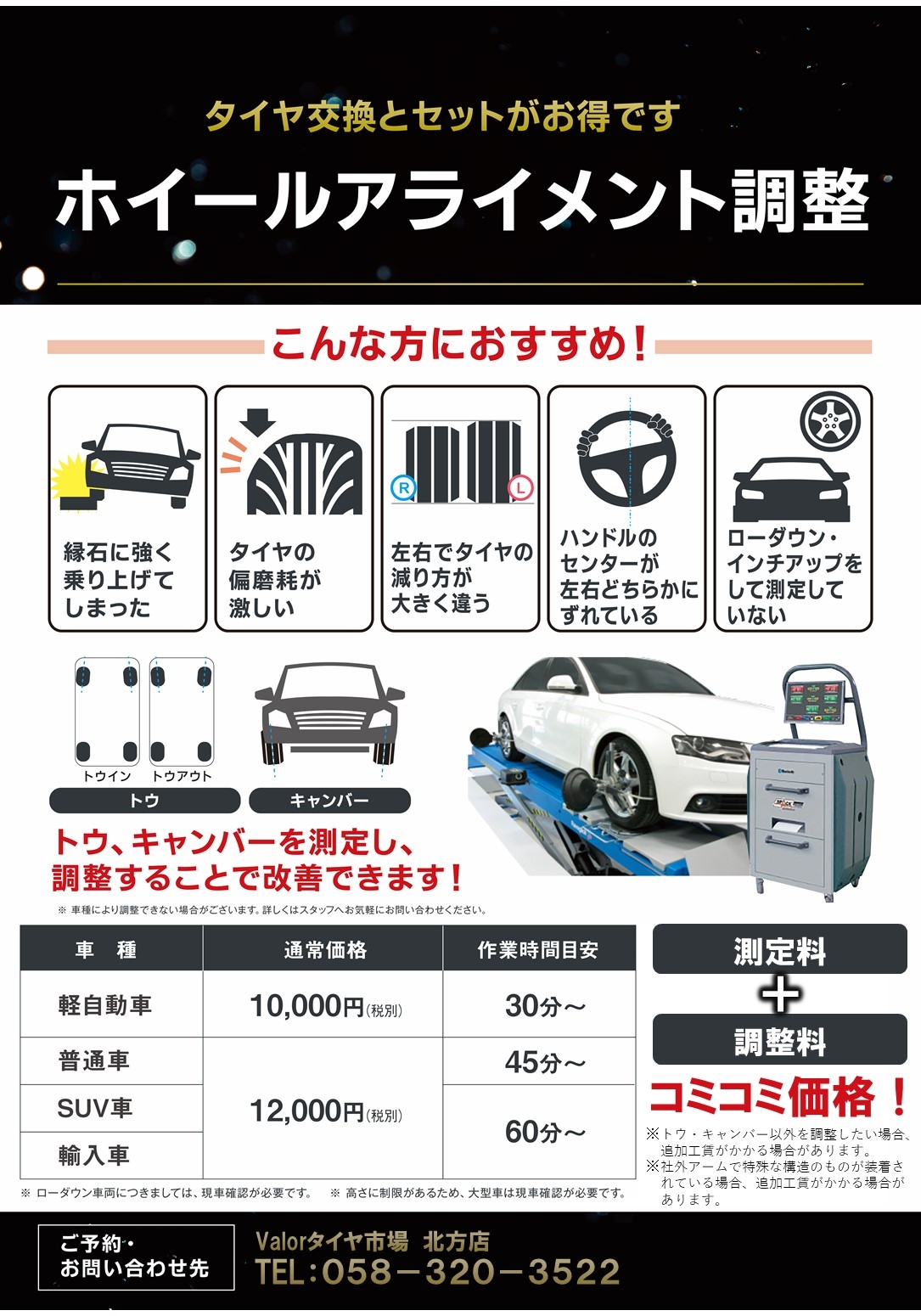 また、本日よりバロータイヤ市場 北方店ではアライメント調整の新サービスを開始いたします。