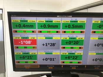 本日は、アライメント調整でのご来店ありがとうございました。またの、ご来店お持ちしております。