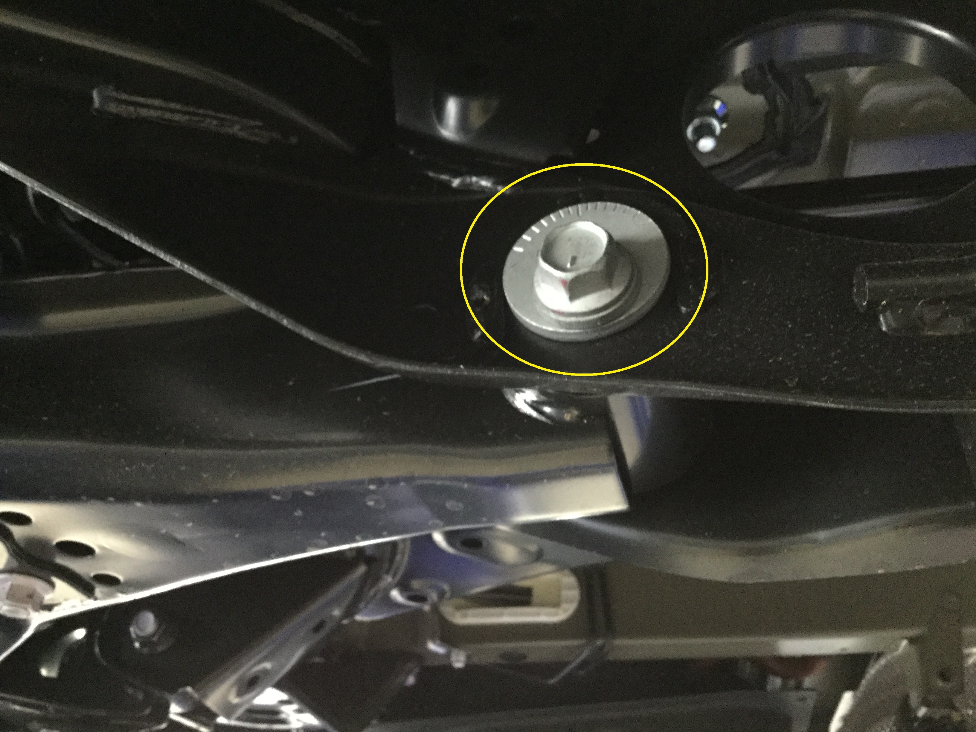 まずは、リアのトーを調整します。この偏心カムのナットを緩めます。