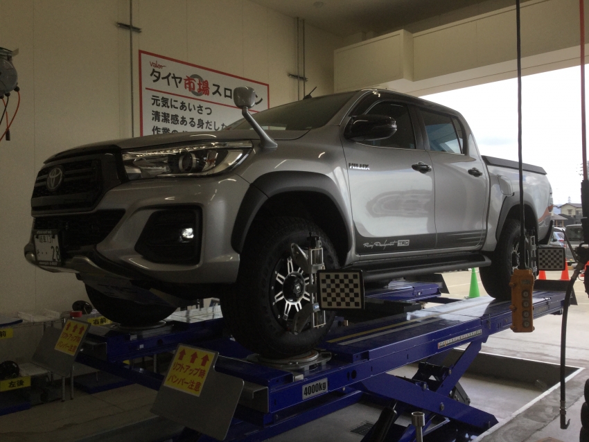 本日、トヨタ ハイラックスがアライメント調整で入庫しました。しかも、2台です!!