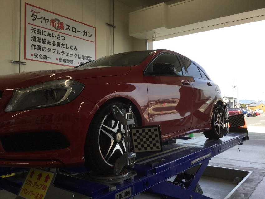 今回はベンツAクラスのお客様で、夏タイヤ4本交換+アライメント作業を致しました。