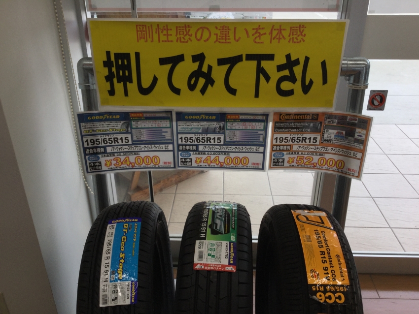 当店では、剛性面の違うタイヤを3種類ご用意して押し比べコーナーを展開しています。