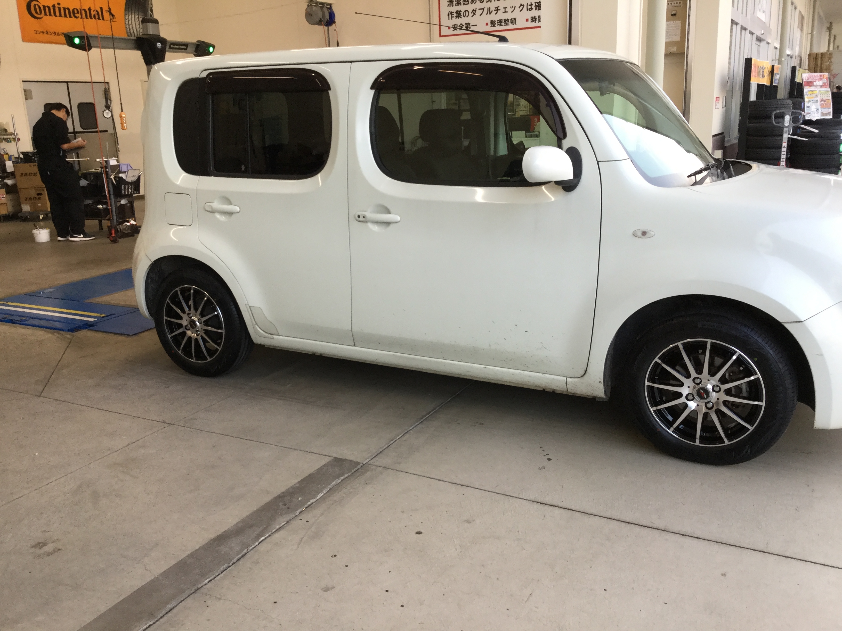 先日、日産 キューブがホイールセットの交換で入庫しました。