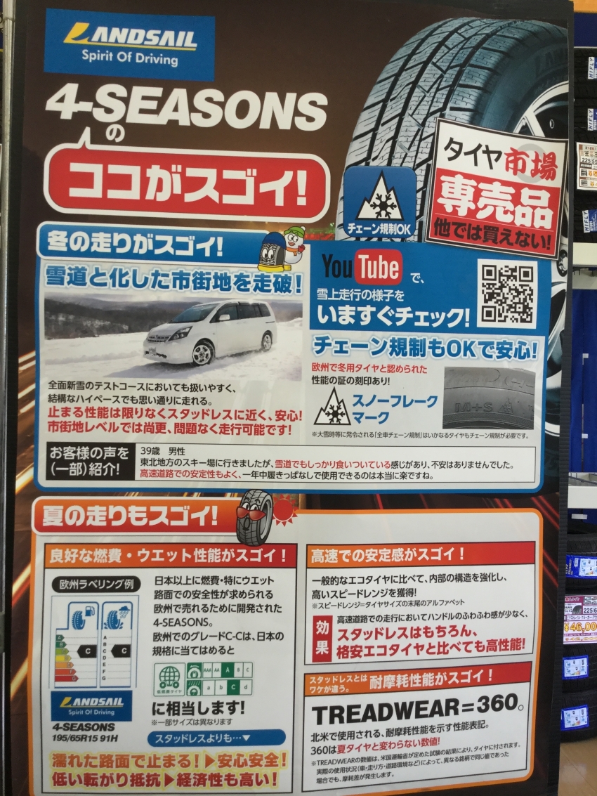 ミシュランやグッドイヤーのメーカーや、当店でしか販売してないランドセイルなどのオールシーズンタイヤを、取り揃えております。