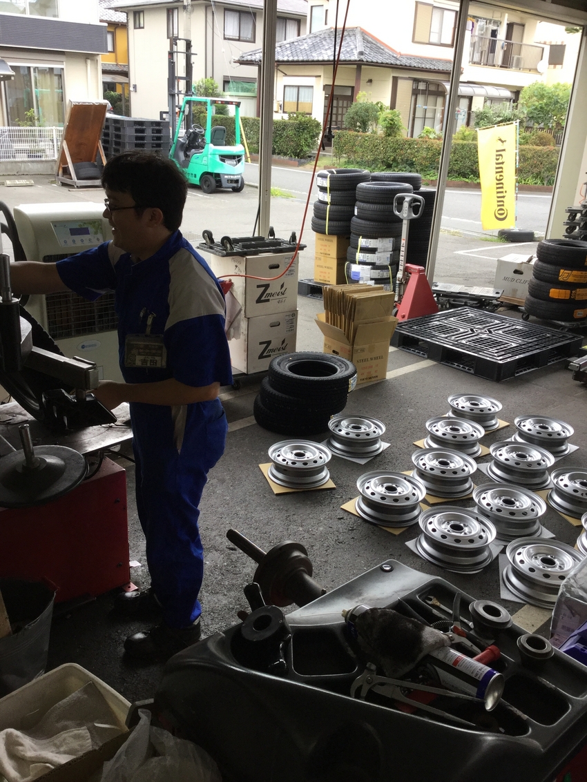 画像はその一部、軽バンタイヤのスタッドレスホイールセットを組んで様子です!ヽ(' ∇' )ノ