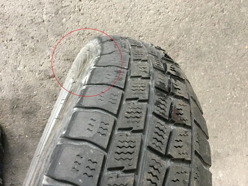 こうなった原因として考えられるのはスタッドレスタイヤを履き潰しで夏も使い続けてきた事で中のワイヤーが切れてしまいこのように歪んでしまったと考えられます...